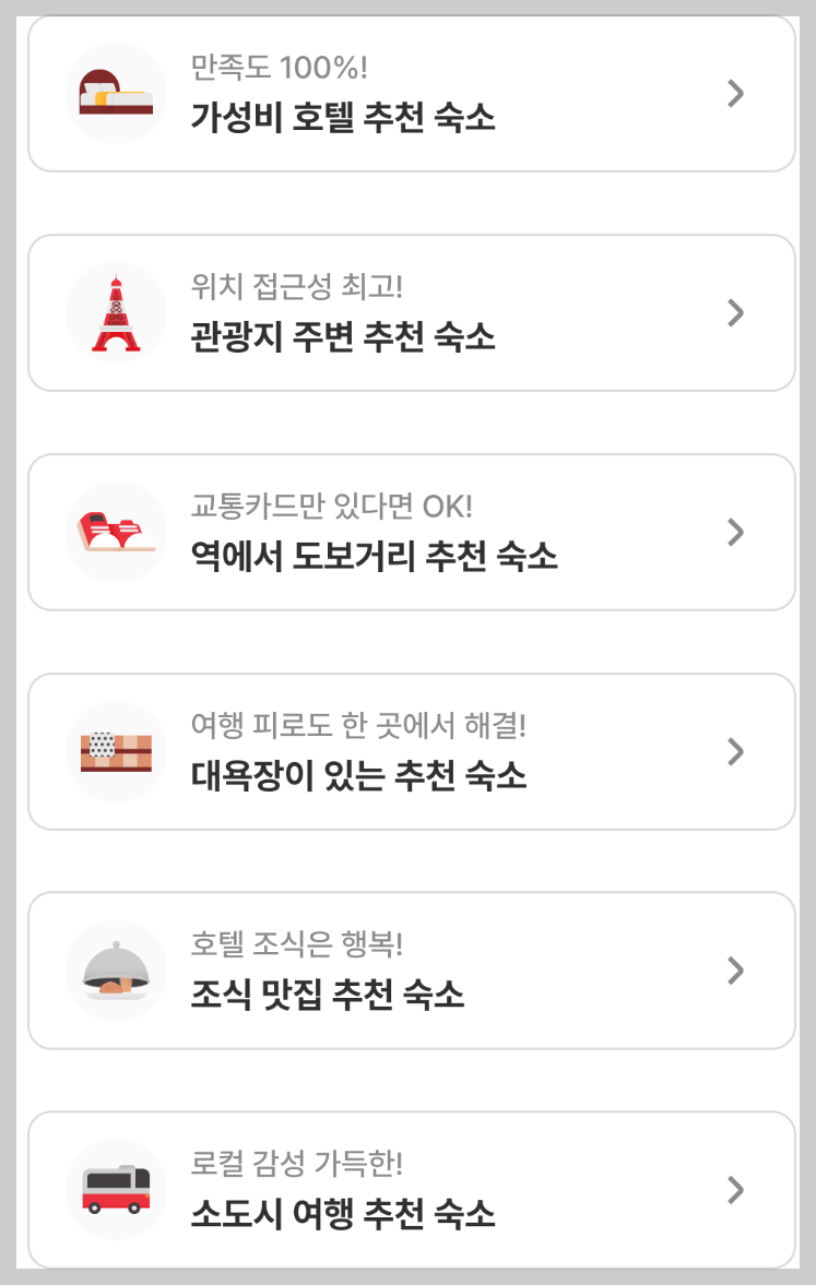 이 외에도 여기어때 링크를 통해 관광지 주변 숙소 및 다양한 조건의 오사카 호텔을 검색할 수 있는데요. 여행객들의 관심도에 따라 숙소를 분류해 놓아서 고르기가 한결 수월했습니다.
